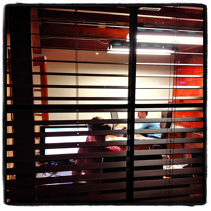 Through office window on 2nd Street in downtown Santa Monica…