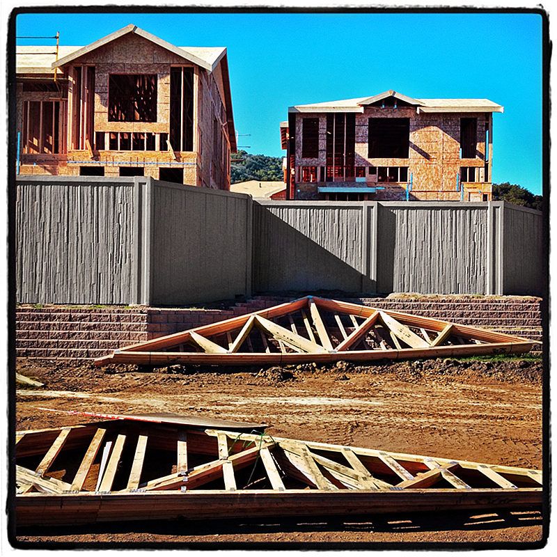 In just one week, trusses, plywood siding and roof added… © roger minick 2013